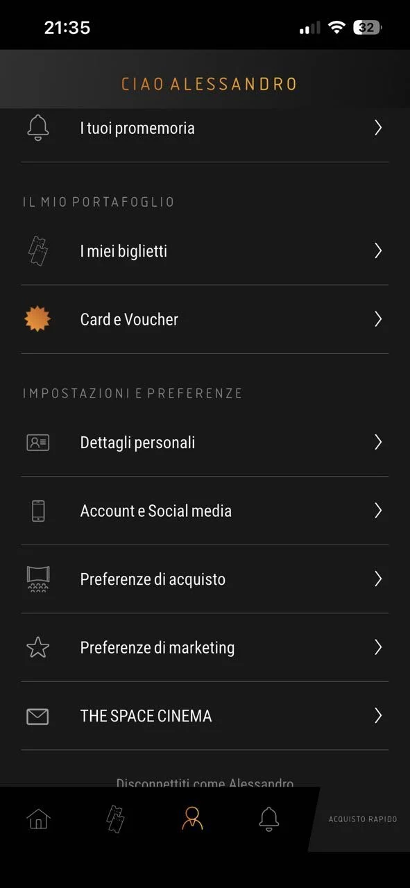 Nella sezione “Preferenze di acquisto”, accessibile dal profilo personale, l’utente può impostare il cinema preferito, il numero abituale di posti e il metodo di pagamento. In assenza di impostazioni manuali, l’app utilizza automaticamente la geolocalizzazione per selezionare il cinema più vicino. Una volta definite le preferenze, i parametri vengono precaricati automaticamente nei futuri acquisti, semplificando il processo e riducendo i tempi di compilazione. Questa funzionalità mostra una buona attenzione alla personalizzazione e all’efficienza, favorendo la fidelizzazione degli utenti abituali.