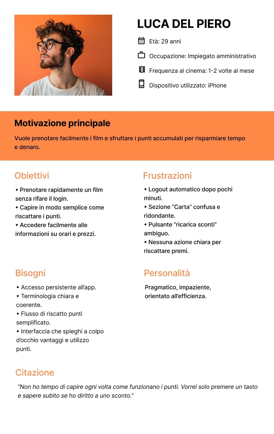 Grazie a questi insight, ho definito due personas rappresentative del target: Luca Del Piero e Marta Teston.