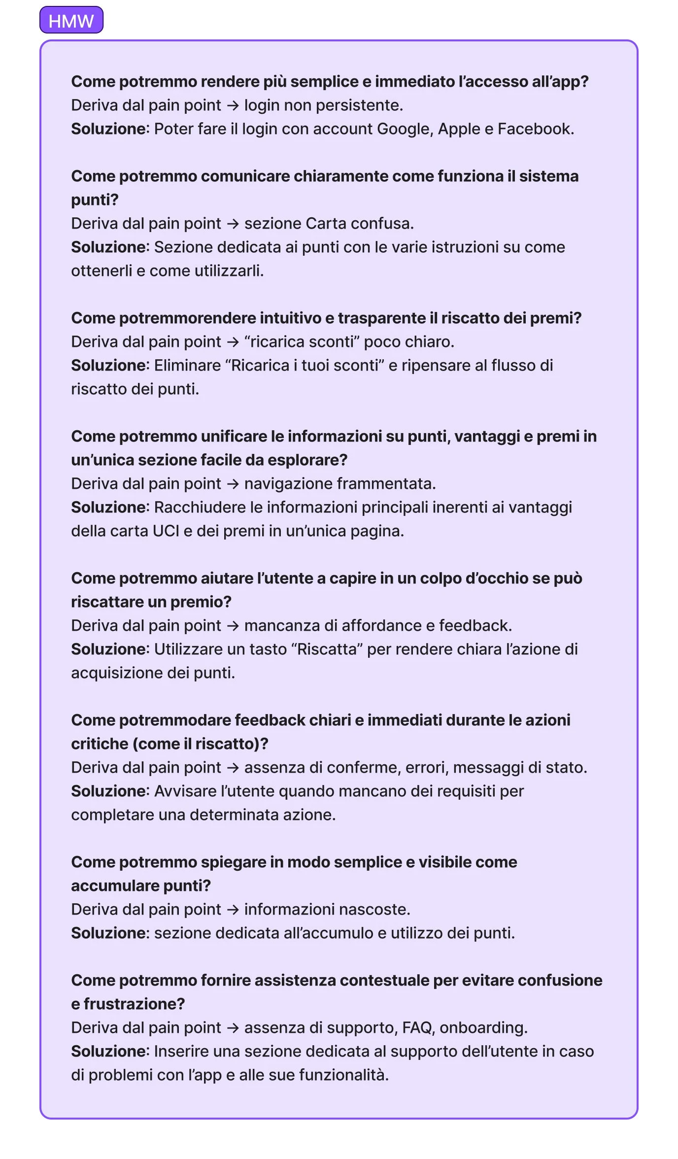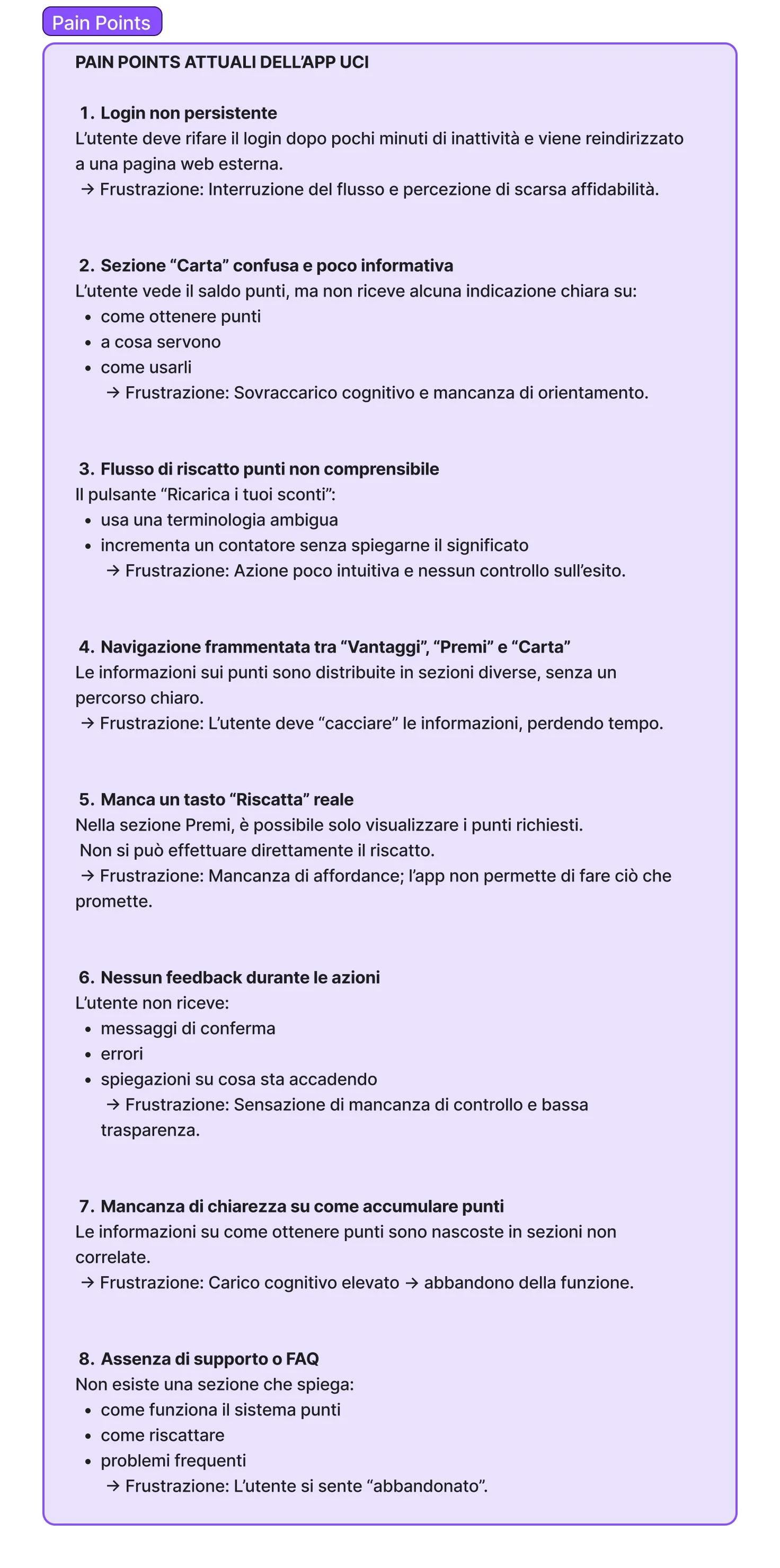 Il redesign risponde direttamente alle criticità emerse nella ricerca, migliorando trasparenza, orientamento e percezione del valore del programma fedeltà.
